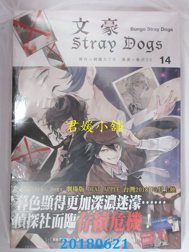 本店刊登的圖片都是第一時間出版日當天所拍,讀者若要首刷書,請在出刊時就來購買!!日久或售完就無庫存,要請書商補書,書商沒有幫忙挑首刷書這樣的服務,都是按書名送來,故不保證有首刷!!除非商品標題有特別寫是首刷版,請不要以非首刷或與圖片不同,來退貨退款,恕不受理!!購買前請張大眼睛看清楚,或旺旺詢問客服,以避免日後糾紛!!謝謝!! 【內容簡介】 文豪Stray Dogs 14 書重 200 公克